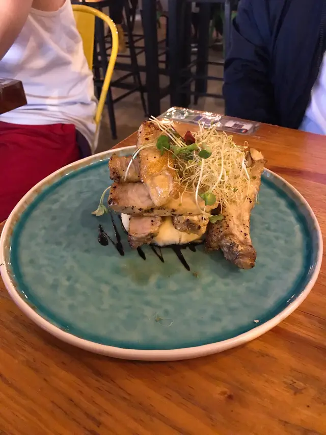 相反這個煙薰西班亞伊比利亞豬扒就十分出色!👏🏻👏🏻👏🏻這個豬扒端上枱時是用透明蓋蓋住的,店員一打開蓋時,內裡的煙便全部走出來了。視覺效果一流,未開始食先開始笑。😂雖然豬扒非常厚,但肉汁鮮嫩,配上小粒小粒的蕃茄碎和香滑的薯蓉,更突顯豬扒的美味。推介👍🏻👍🏻👍🏻