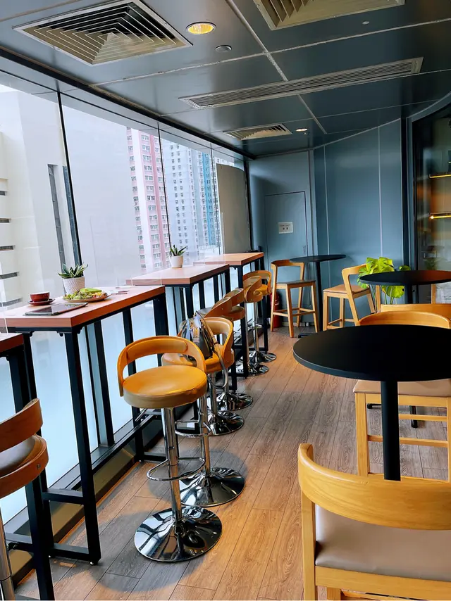 過來葵興辦事,在等待銀行開門的空隙,順便探一下@KCC的這家GOOD DAY CAFE,室內是原木色餐桌配簡約裝潢,周圍隨意放置的大小盆栽,風格充滿小清新個性。選擇可以看到地鐵🚇的窗口位坐下,一邊早餐一邊享受窗外风景,悠然自得😊。叫了個好日早餐,綠色多士味道不錯,咖啡奶泡打得略粗小小,不過不影響咖啡豆香😁。