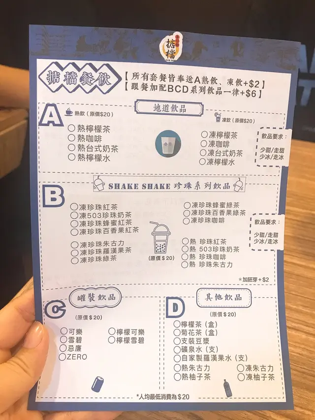 點餐紙非常簡約,雙面印冊,一面點主食同小食,另一面點飲品,非常簡單