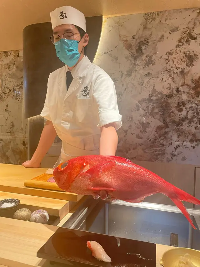 金目鯛壽司 連魚皮食 魚既眼睛帶有金色 所以叫金目鯛