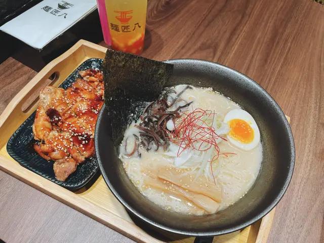 ✨公司多野做搞到個人壓力好大,連食個飯都趕時間,放假既日子,想一個人靜靜地過,一個人過是一件快樂的事,係商場行左幾轉,睇到麵匠八既店面好吸引✨就係有一個感覺想行入去食,入面好靚,靚到好似酒吧一樣,習慣易相打卡,一如既往照樣弓卡,然後叫了一個拉麵加一杯飲品💕