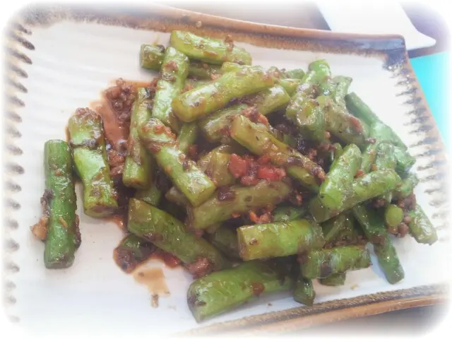 油香甘醇的欖菜乾是潮汕食品,是用芥菜葉以青橄欖及鹽等醃製而成的。欖菜干煸四季豆($48)是把四季豆加入欖菜、辣椒和肉碎用油慢慢煸干而成的一道滑嫩腴香、清新爽口的小菜。單看這道菜已可看出廚師的廚藝到家,因為欖菜本身很多油,炒四季豆時下油分量要掌握得很好,方可做到香辣兼備,而碟上沒有多餘的油份。
