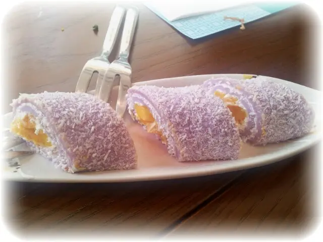 紫米香芒卷($28)是於糯米皮中混入紫米,造成紫色煙韌的糯米皮,然後捲著鮮甜的芒果粒和少量香滑的忌廉,再灑上鮮香椰絲,即成香甜軟糯、口感豐富的甜品。
