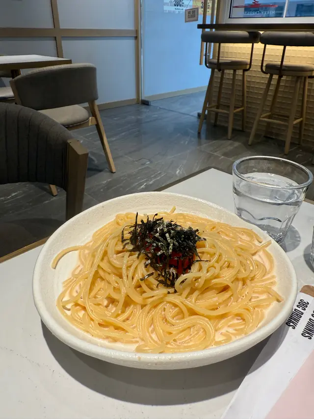 明太子忌廉意粉,意粉的煮得恰到好處,非常彈牙爽口,搭配上濃郁的明太子醬汁,味道層次上升,明太子增加口感,好creamy 好香濃,質感比較濕潤是我比較喜歡的。