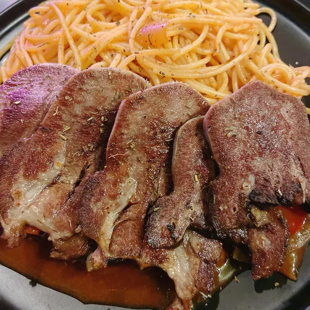 牛脷份量好多,口感軟淋,紅酒味略嫌不足,意粉有蕃茄味,酸甜開胃,配菜洋蔥🧅同紅蘿蔔🥕煮得好淋,好入味