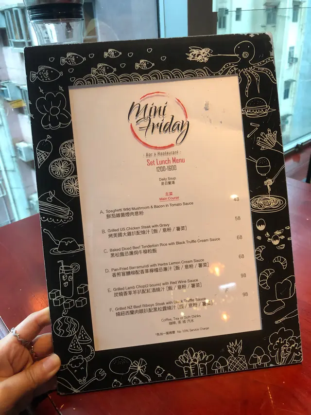 環境舒適*午市寧靜之選 CaroleneKwanLevel 42020-05-18158 views Follow 最近好少出街食飯早幾日出開旺角行過銀城先發現原來樓上有餐廳原來💛 Mini Friday就係銀城樓上二話不說入去💪🏻Lunch價格唔高食物質素都有水準加上環境好舒適可以好休閒咁食個lunch享受下片刻嘅寧靜同朋友一人叫一個lunch set有湯有飲品一百蚊都唔洗嘅西餐性價比超高羅宋湯香煎盲鰽柳配香草檸檬忌廉汁$68燒紐西蘭肉眼扒配黑松露燒汁$98一上檯,估唔到盲鱨魚原來好大份差啲食唔哂😂配埋個檸檬🍋汁好好味😋牛扒煎得岩岩好有少少肉汁連埋飯一齊食個餐仲可以跟飯/意粉/薯菜幾十蚊嘅西餐好抵食!The above review is the personal opinion of a user which does not represent OpenRice's point of view.1Share環境舒適*午市寧靜之選 Mini Friday (銀城廣場) https://s.openrice.com/QrKT0IyoS00Report Post Ratings5Taste5Decor5Service5Hygiene5ValueRecommended Dishes香煎盲鰽柳配香草檸檬忌廉汁$68燒紐西蘭肉眼扒配黑松露燒汁$98羅宋湯Date of Visit2020-05-11Dining MethodDine InSpending Per Head$80 (Lunch)