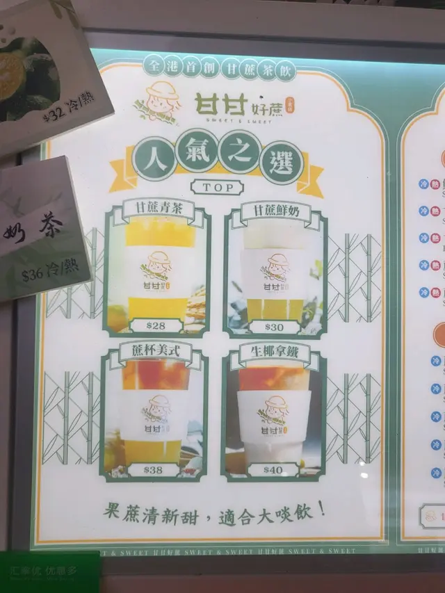 作為一位熱愛甘蔗的香港女生,我今天有幸造訪了旺角的甘甘好蔗,一家專注於甘蔗飲品的店鋪。我選擇了外帶,點了他們的招牌冷甘蔗青茶和冷蔗打檸檬。冷甘蔗青茶使用了禦翠烏龍青茶,清新的茶香搭配著甘甜的甘蔗汁,帶來了一種獨特的口感,讓人回味無窮。而冷蔗打檸檬則是清爽怡人,酸甜的檸檬與甘蔗的天然甜味完美結合,讓人在炎熱的天氣中倍感舒暢。