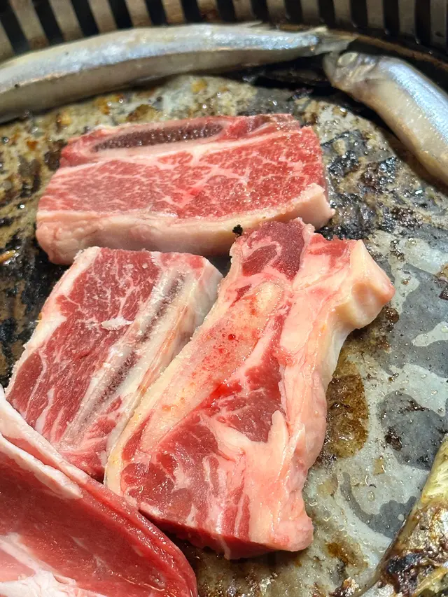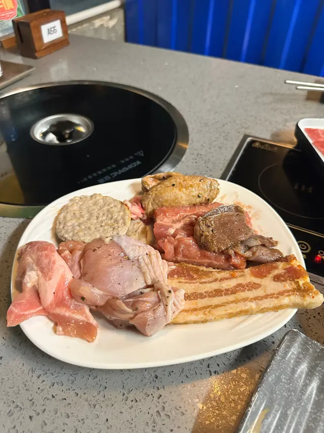 韓式豬五花、韓式魚柳、韓式雞翼都非常美味,還有各式肥牛、羊肉、雞肉、雞腎一口豚,台灣腸、豬頸肉、多春魚、金沙骨等,肉質不錯,食落十分惹味。