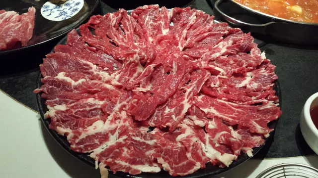 肥牛絕對是打邊爐必點之選,這兒的金牌手切肥牛,有邊位同脊位可選。兩碟各有千秋,邊位有咬勁,重牛味,脊位每片油脂分佈平均,灼一灼後,入口滑嫩,確實不錯。