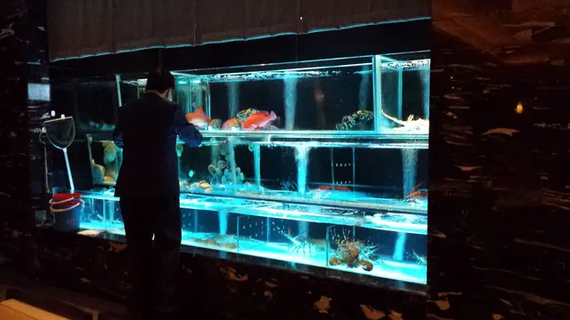 再加上門口左邊醒目的魚缸,魚、蝦、蟹在魚缸中生猛地游來游去,非常鮮活,亦能增進食慾。