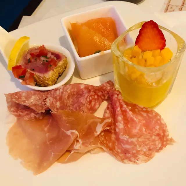 熱食種類少但夠食,雞魚羊牛蟹鉗海參扇貝,味道OK。少量爐端燒,連蟹腳都有燒的!粉麵檔,仲有熱熔芝士,燉湯等。魚生有赤蝦,三文魚OK,象拔蚌麻麻,不過都唔會腥。生果、甜品Movenpick雪糕、雪米糍....