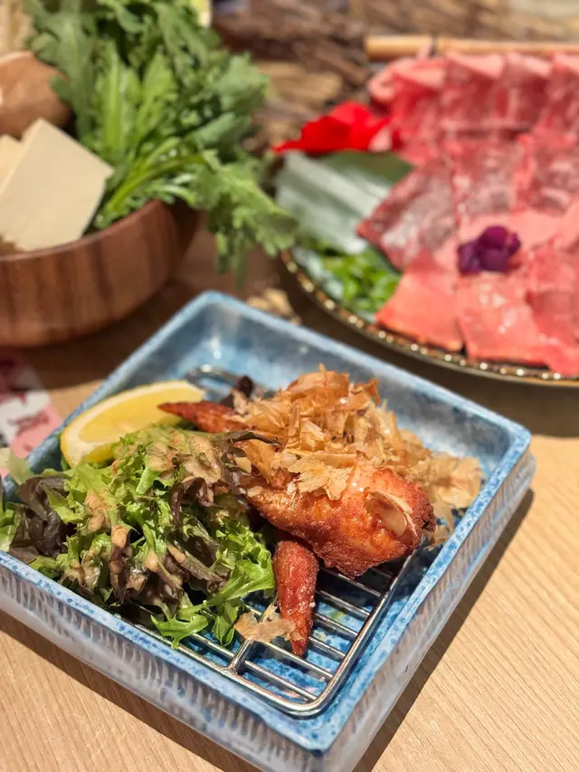 壽喜燒套餐🍲主菜嘅牛肉盛盒真係好吸睛😍有多款唔同靚牛肉,用來做壽喜燒真一流,檸檬牛舌、安格斯牛板腱、澳洲M5和牛肩胛,入口即溶😍配合埋啲特色嘅壽喜燒、糖同新鮮雞蛋汁🤤更加突出牛嘅鮮味😋濃濃牛肉味🥩真係夠晒滋味!