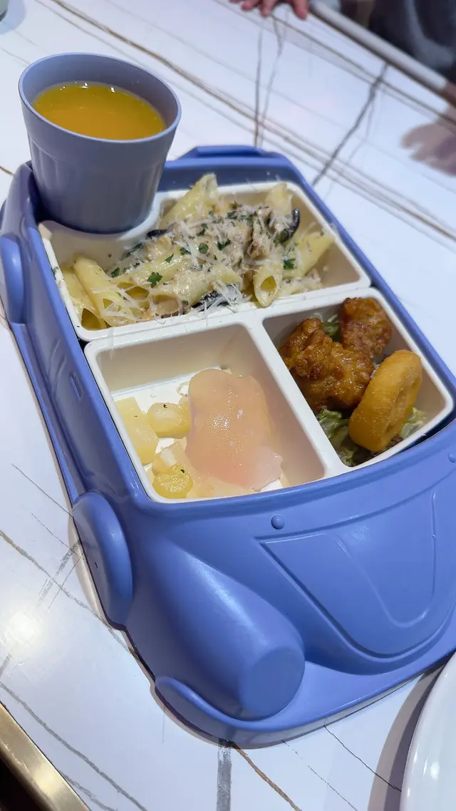 👶 兒童餐 - 吞拿魚忌廉長通粉,小朋友最鍾意嘅車車造型餐盤,食得又開心又有食慾!🚗💖