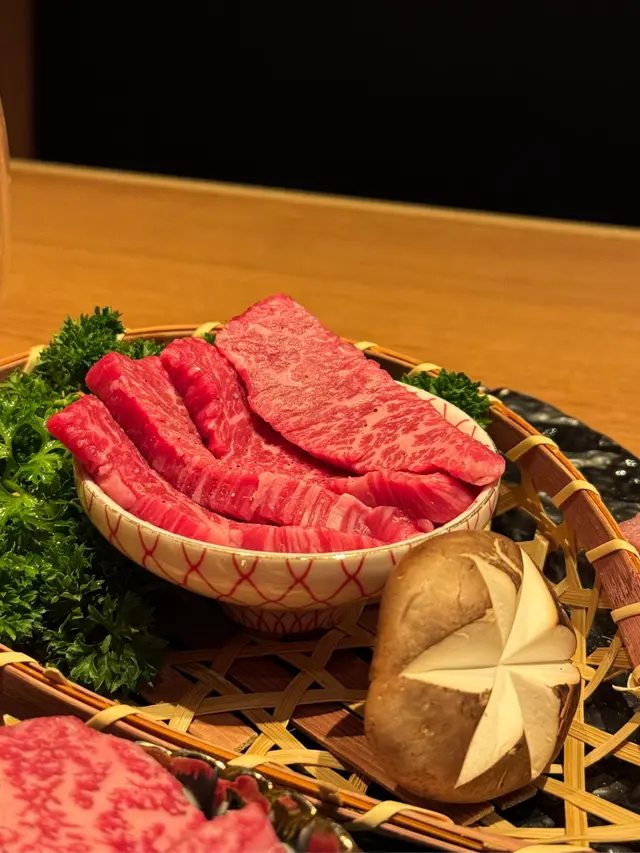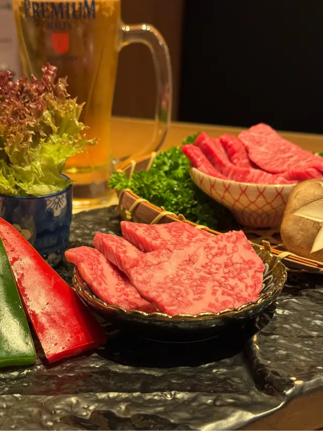 拼盤嚟到嘅時候,店員有介紹應該點樣跟次序食,應該由最瘦開始食起,中間攝個豚肉,食啲沙律,咁就唔會太膩~ 最後先係食和牛肉和牛啲油花均勻~ 由牛排食起,牛味濃帶油香。到食三筋牛排牛味都油香兼備亦接近入口即溶🙃