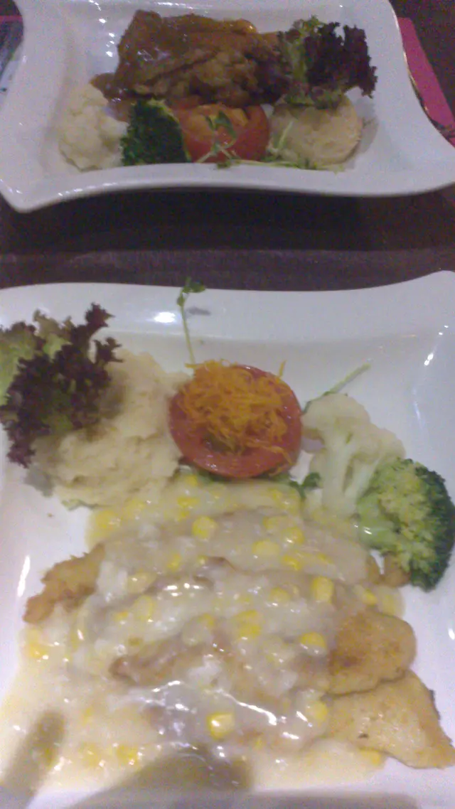 主菜, 我點了粟米汁龍利柳, 另一半就叫了芒汁雞扒,