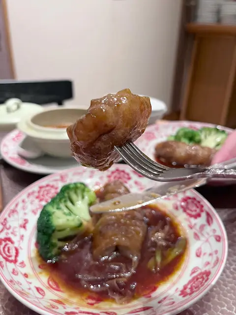 紅燒鮑魚燴仿翅:絲絲嘅仿翅配合鮮美湯底,口感層次豐富