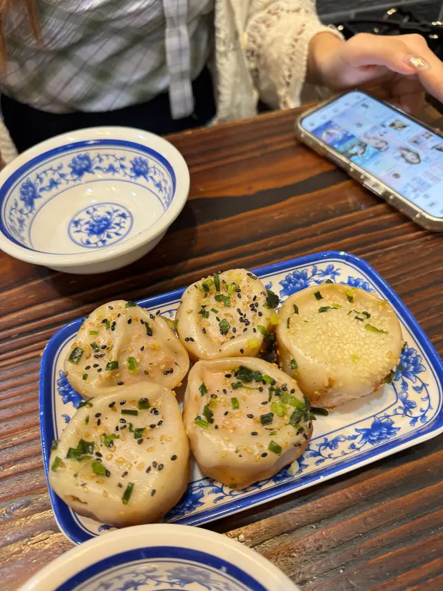 店家的生煎包無疑是主角。白胖的包子在巨大的鐵鍋中煎得嗞嗞作響,出鍋時底殼金黃酥脆,麵皮鬆軟帶有嚼勁。一口咬下,滾熱的肉汁瞬間迸發,鮮甜的湯汁與緊實的豬肉餡在口中交融,食客務必小心燙口,但這份燙嘴的鮮美,正是其靈魂所在。