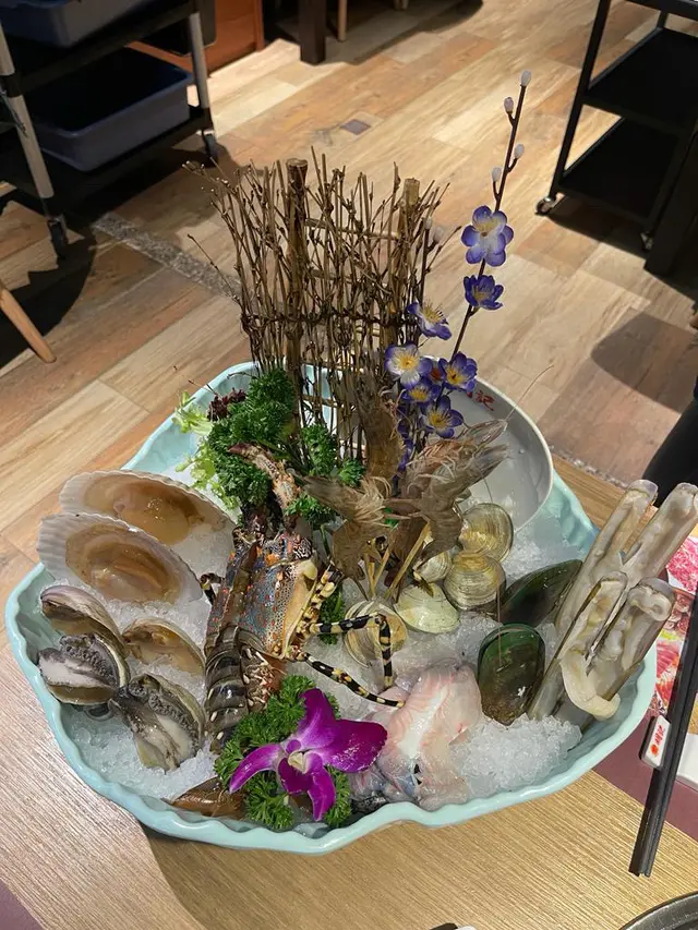 海鮮盤上枱時,蝦和鮑魚等仍充滿活力,生猛非常