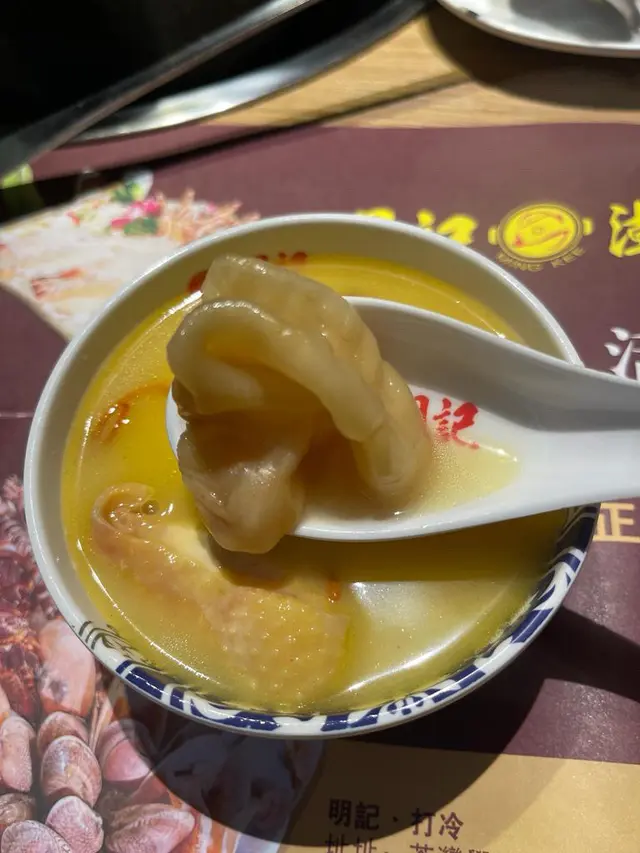 職員有禮~侍應即場將鮮雞和花膠放入預先熬好的特濃雞湯大滾,然後焗大概5分鐘左右就可以品嚐。每啖湯都充滿濃郁鮮雞味、雞肉剛好熟透、花膠黏口爽滑、放一陣就浮出一層薄薄的黃油在面,味道一流