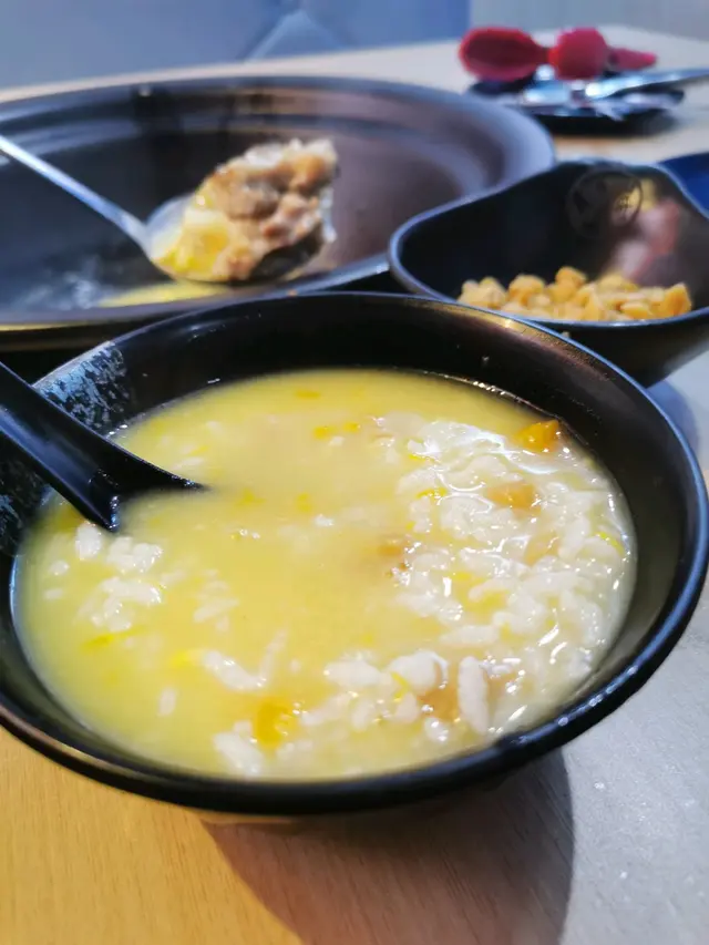海鮮精華嘅湯汁入面有排骨,粟米,南瓜,薑片,加上之前跌落去嘅蟹膏