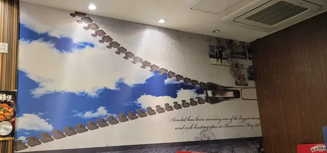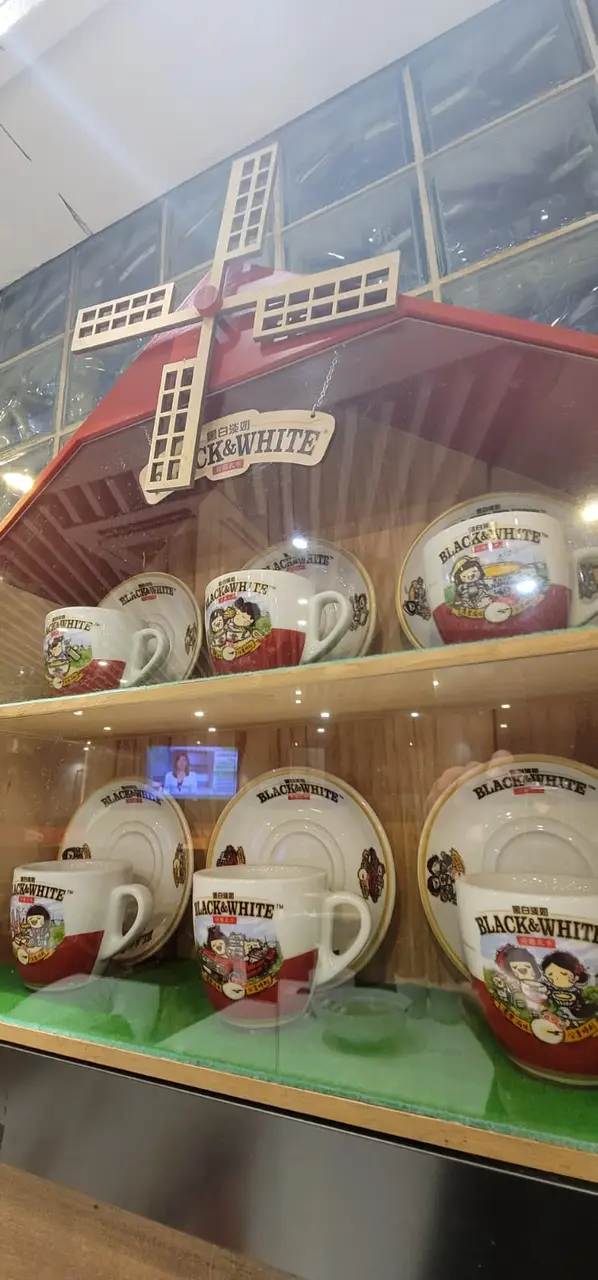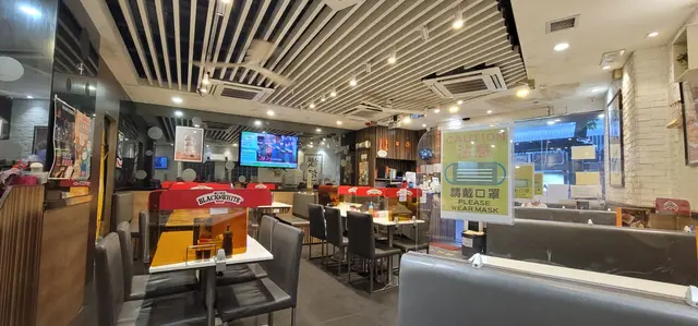 茶記的裝修簡潔,牆上掛了黑白淡奶的咖啡杯和碟的木架作裝飾,另一幅牆有一幅拉鍊天空牆畫,很別緻,食店的左右兩邊是卡位而中間部份是長枱配梳化椅,每枱都用膠板相隔,非常安全。