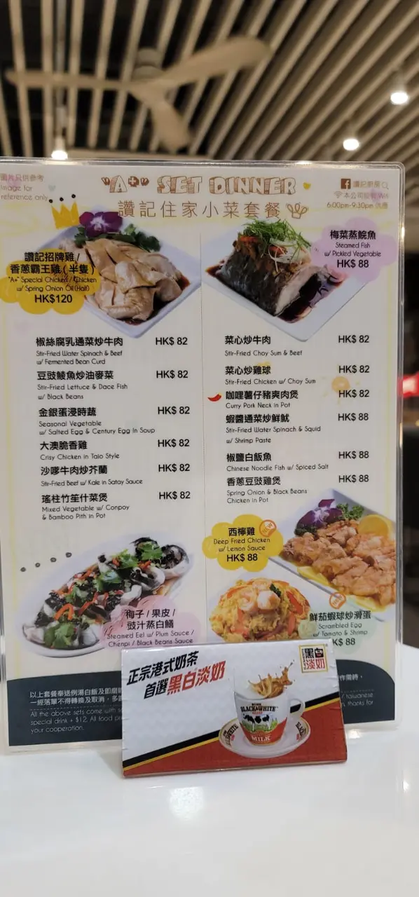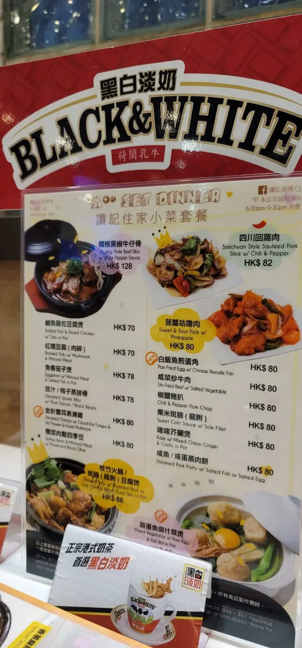 看一看睌餐住家小菜套餐,價錢由$70~$128,奉送例湯、白飯和飲品。