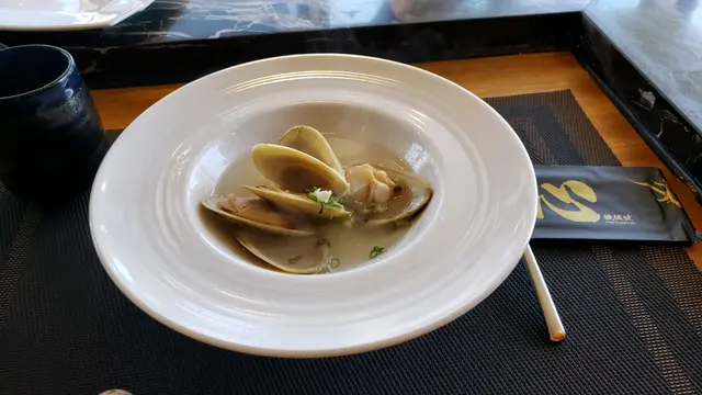 清酒煮刀貝 - 清酒煮後酒精已經揮發了大部分,餘下只有清酒的香味,刀貝非常新鮮,放入清酒之中略煮數分鐘剛好,有刀貝的鮮甜,也有清酒的香味,口味清新。