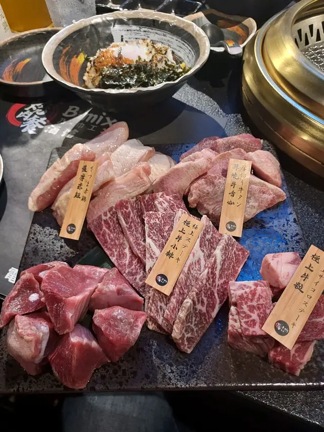 食材真的繁多, 有薩摩赤雞腿肉和雞腎, 安格斯牛小排, 安格斯牛粒, 厚切牛舌心