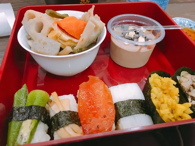 壽司上面有蕃茄、秋葵、准山、菇等,出奇地夾。價錢由$50至$100不等,睇你叫乜野餐。位置唔多,好似去左日本小店咁,得幾個位。比較岩一至二人去食。