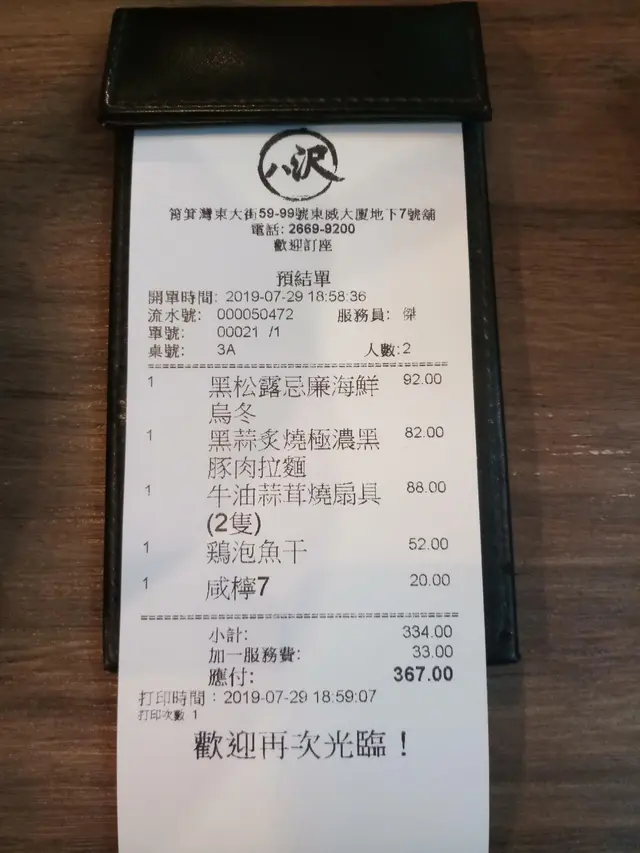兩個人普通一餐晚飯3百幾蚊,可能有少少偏貴左D,不過feel到呢間鋪既出品並唔係求其是但果隻,況且辛苦搵來至在食,間唔時都OK既. 如果有拉麵/烏冬愛好者,可以考慮黎試下.