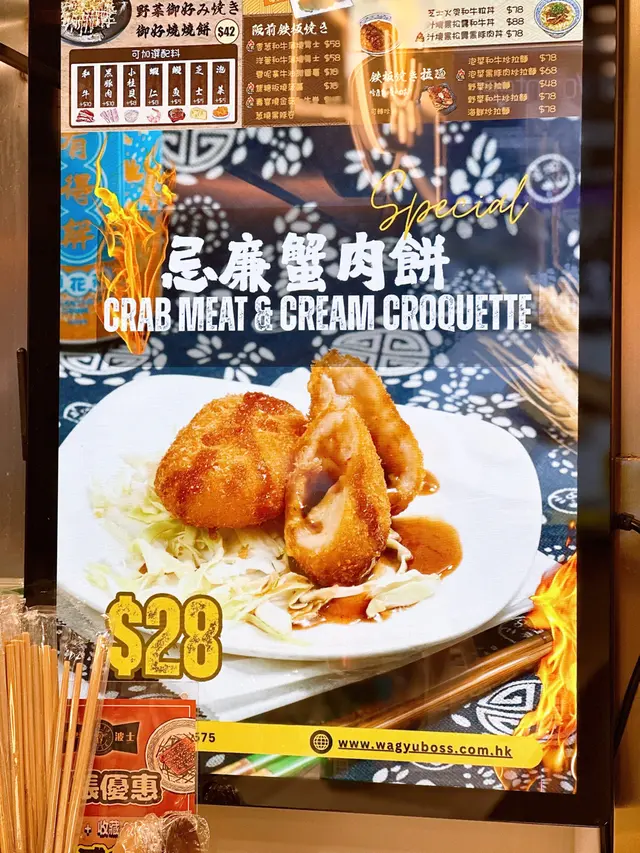 用心製作 KwaiowoLevel 42025-09-1264 views Follow 支持小店系列😍旺中新開張外賣店✨主打和牛關西大阪燒!開放式廚房,即叫即煎睇住店員係鐵板上製作食物已經食慾大增🤤-汁燒黑松露和牛丼 $88醬汁甜甜的,帶點黑松露香氣牛肉剛剛好,唔會太乾柴一定要趁熱食🤤-和牛芫荽餃子 $38 冰花煎餃🥟形狀超靚食落有淡淡芫荽香氣唔過火,又做到口有餘香蘸埋醬汁,好食!-沙嗲雞肉串 $15自家製沙嗲醬雞肉出乎意料地嫩滑呢個價錢嚟講有驚喜😱-和牛關西燒 $48 蛋香氣滿滿,帶點焦脆感大阪燒該有的元素都齊了🤤The above review is the personal opinion of a user which does not represent OpenRice's point of view.LikeShare用心製作 和牛波士 https://s.openrice.com/QrKT03rrU00Report Post Ratings5Taste5Decor5Service5Hygiene5ValueDining MethodDine In