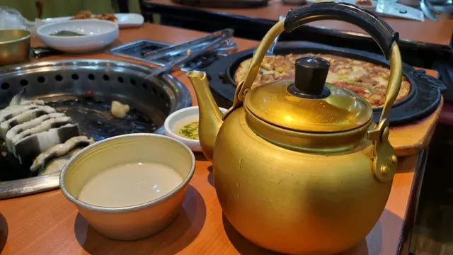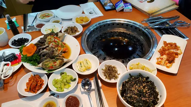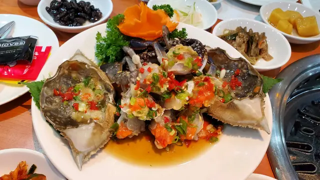 同朋友慶祝生日,朋友想食醬油蟹,預先book了這間。我們2個人,order了2隻醬油蟹(唔會太咸,能食出鮮甜,而且也很多羔,加上斬好細細件,食得很方便,阿豬媽亦會替我們撈好紫菜飯,)、燒鰻魚(阿豬媽會幫我地燒好,然後續一介紹每種食法,個人覺得隨配料送上的芝麻葉經醃製後,包著更好吃)、海鮮薄餅(口感很QQ,而且size亦很大份)、海鮮豆腐湯(很鮮甜)和一煲米酒(很適合女士飲用),還有餐廳送上的9款小碟(每款都很不錯),最後再送上薑味薏米水解膩(這個甜甜的),超滿足
