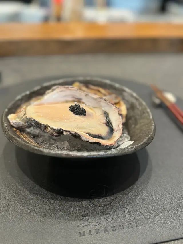 廣島蠔肥美飽滿,加埋帶咸嘅黑魚子,海水味即刻湧哂出來