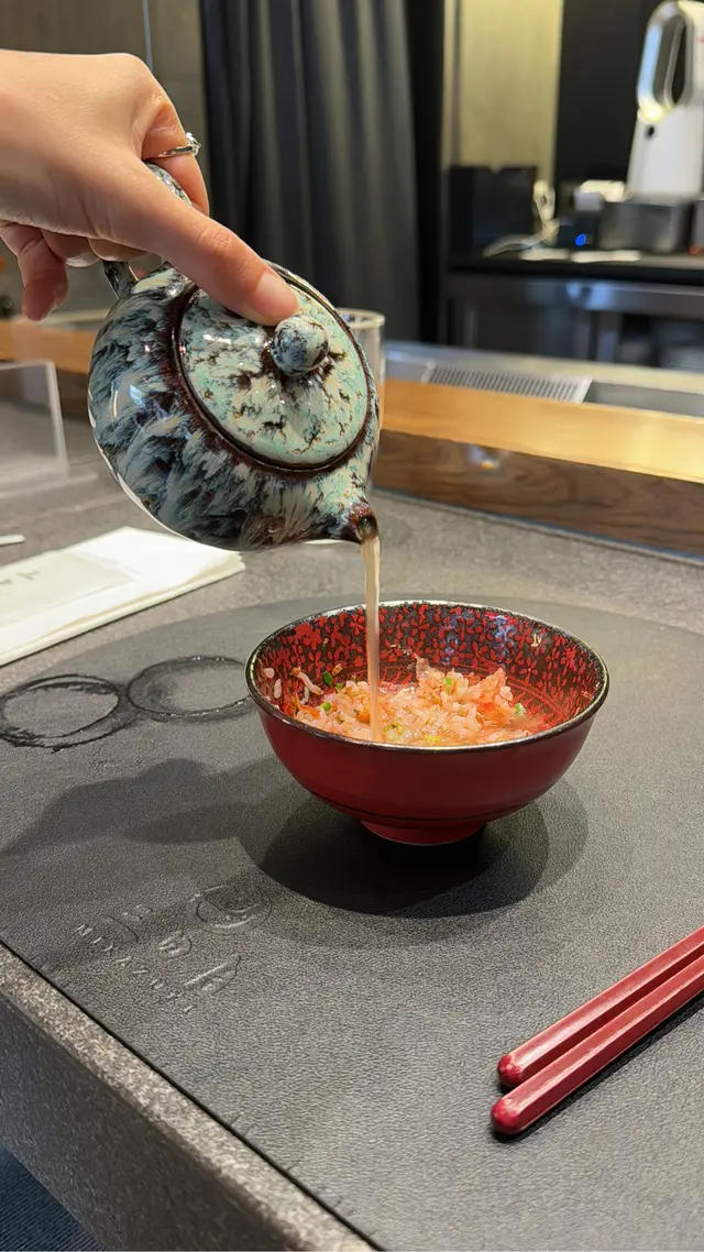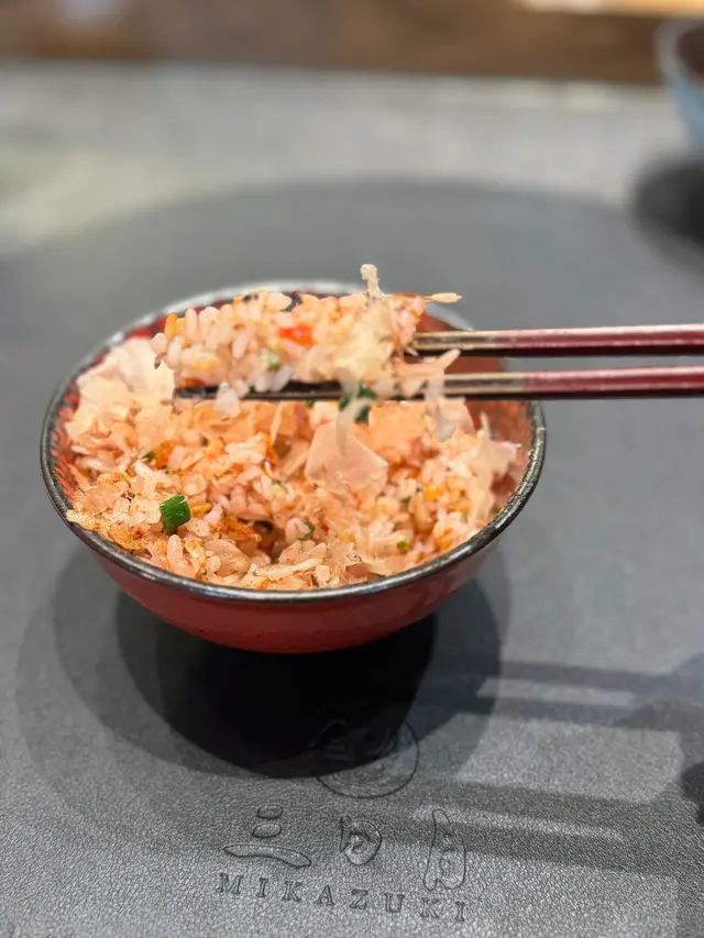 有別於其他鐵板燒嘅炒飯,呢度自家嘅酸梅醬酸酸甜甜,加入炒飯之中有助膩,櫻花蝦淡淡咸蝦香加上炒得乾身嘅炒飯,添加飯嘅惹味感。食一半後更可以加入鰹魚高湯成為茶漬飯,為炒飯昇華😋