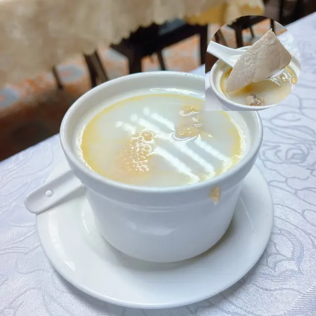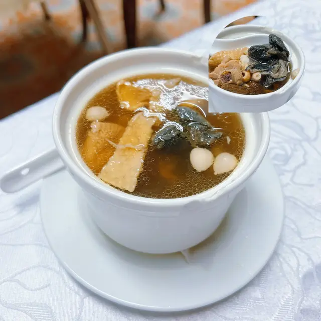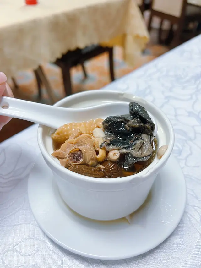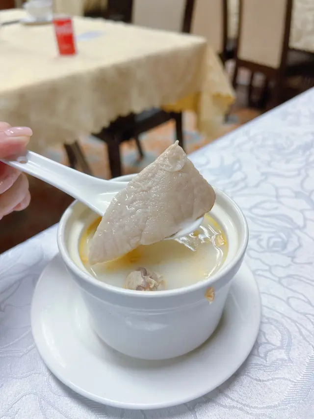 姬松茸菇燉竹絲雞,具有健脾補益、性質溫和功效。竹絲雞配姬松茸菇令湯頭味道更清甜濃郁,慢慢品嘗,會感受到龍華酒店多年來對食物嘅用心同堅持☺️