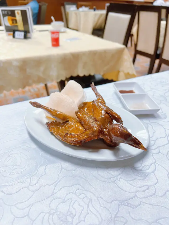 如果講喺香港要食燒乳鴿,相信冇人會唔識龍華酒店。亦都係佢哋嘅招牌菜。乳鴿表皮極香脆😍肉質細緻幼嫰,醃製味道亦都非常到位,如果唔夠味嘅話可以加淮鹽或喼汁架😋😋😋記得記得食之前用龍華酒店提供嘅手套食呀😊