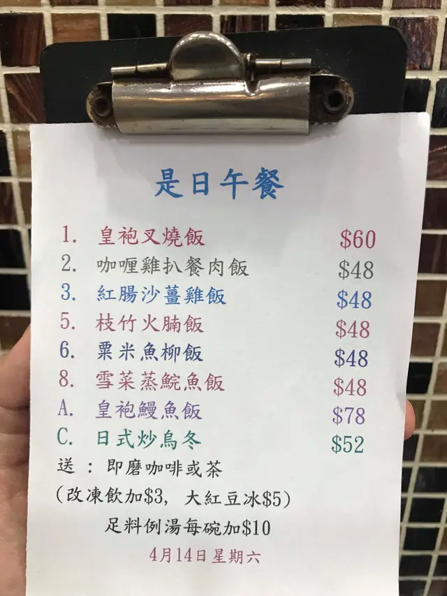 看到餐牌上的是日午餐,的確選擇豐富。8種不同食物,任君選擇。