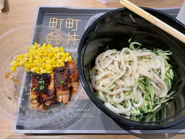 咁港男就叫咗個照燒雞扒配胡麻醬烏冬,係好似啲米線咁分咗上下隔嘅外賣碗咁上嘅。個燒雞扒係okay嘅,個烏冬就好似未夠時間雪返凍少少,係溫熱嘅。當快餐嚟講係可以接受嘅程度,不過唔會特別想試第二次。