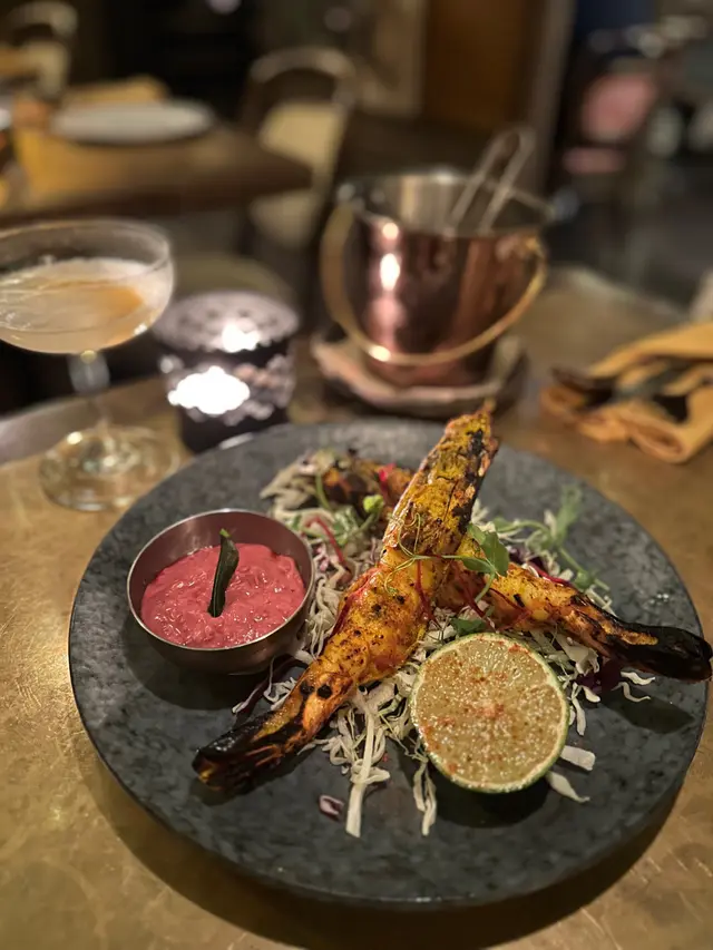 Tandoori Prawn, Black Pepper Cone, Beetroot Raita 🦐🌱