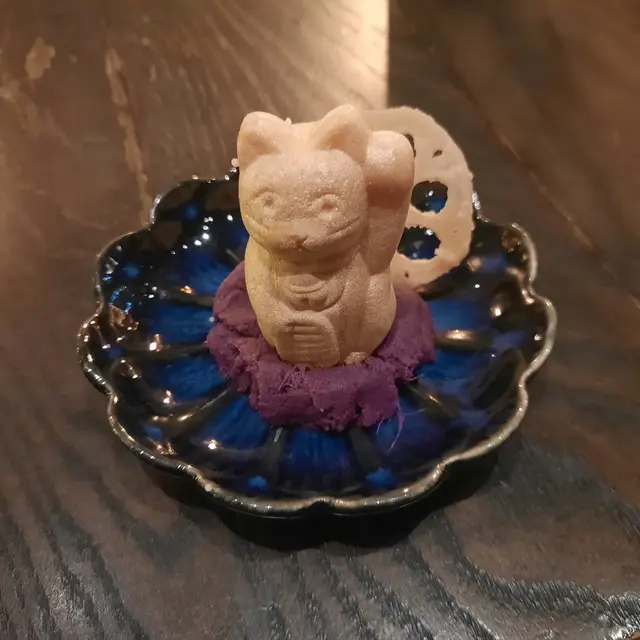 蕃薯蓉口感柔滑,甜而不膩,搭配可愛清新的最中餅沙津,增添了一抹清新的氣息。