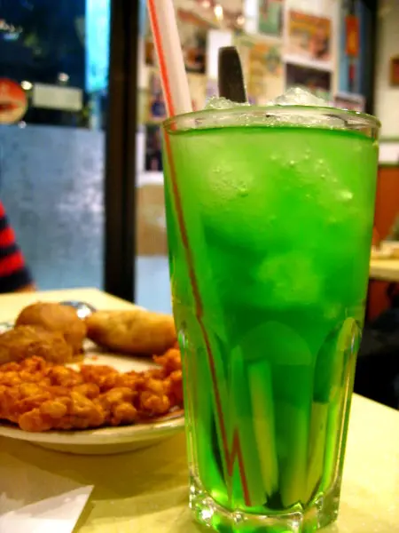 紅毛丹菠蘿冰[$20] : 七彩顏色是冰冰的最大特色~但也是小比最怕之處~~見到青BB的冰~~只夠膽吃當中的罐頭紅毛丹~~沒有太大評價~~~還是交給大比滿足地完成