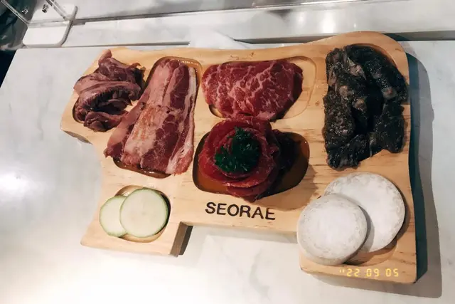 老友鍾意食牛, 懶得諗,叫左個壹頭牛Beef Set ($520), 有喜來烤肉/ 牛五花/ 牛頸/ 牛肋骨/ 調味牛排骨, 整體上牛肉好新鮮, 肉質鮮明,老友鐘意食招牌菜喜來烤肉,夠薄身,容易燒,而我就鐘意食牛五花,少少脂肪,肉質軟嫩, 好好食。每人加多$28可以有自助沙律吧, 都好抵食。 除左有一籃籃的生菜任取外, 仲有唔同款式的泡菜: 韓國酸泡菜 (Kimchi), 青瓜 (Cucumber), 葱絲Green Onion Salad, 喜來泡菜 Seorae Kimchi, 目測喜來泡菜最受歡迎, 好快已經見底, 但我就最鍾意食青瓜, 唔單止醃得好入味, 仲好脆口, 好鍾意個口感, 所以食完再添. 葱絲相對比較淡同埋生菜絲有少少黃, 所以食左少少就無再食啦. 另外調味吧都抵讚, 有海鹽, 香草鹽, 黃芥末醬, 韓國包飯醬, 蒜頭, 麻油, 日式燒肉醬油, 黃芥末醬, 日本芥末, 我最鍾意用生菜包住舊肉, 裡面加日式燒肉醬油+麻油+蒜頭, 好juicy 好惹味.