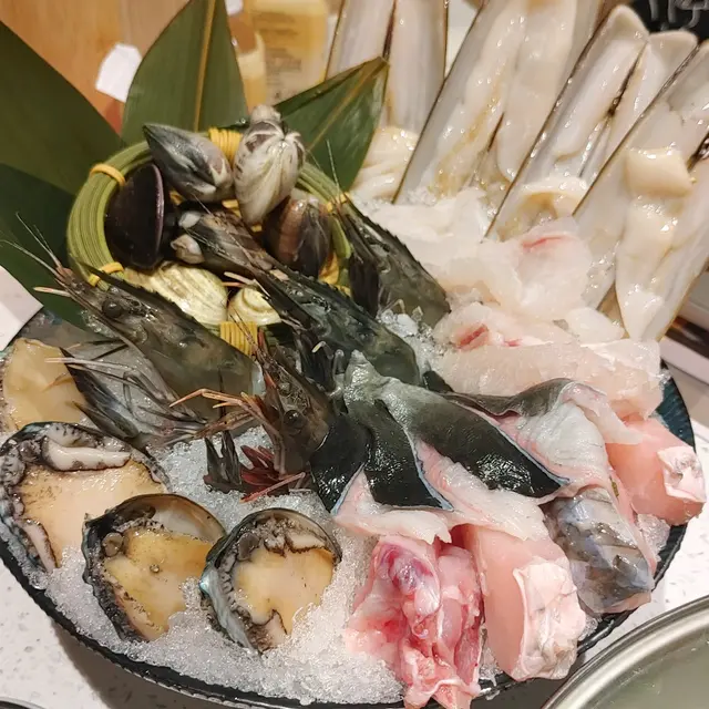 海鮮拼盤,白鱔片、蟶子、蠔、蜆、蝦、龍躉片、是高級質量的味道啊!