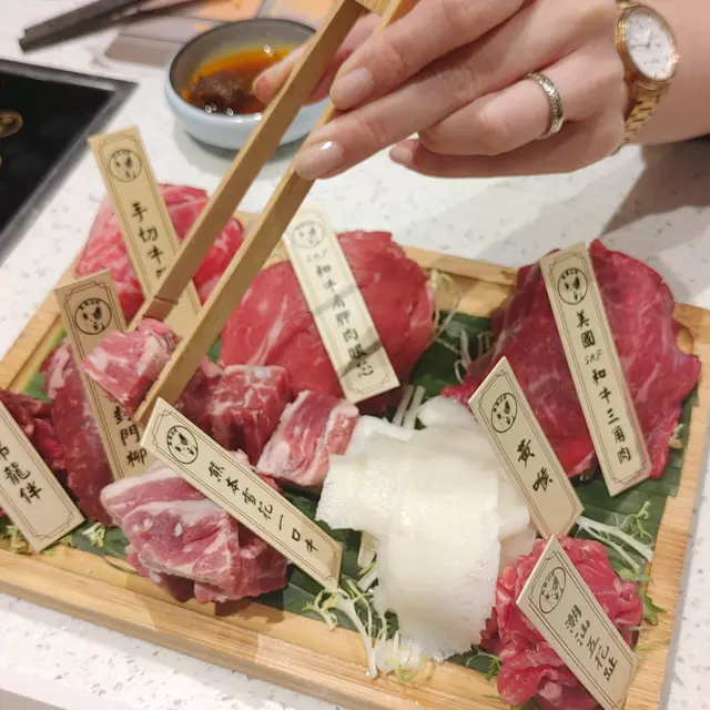 牛肉拼盤,和牛肩胛肉眼芯,潮汕五花趾、手切牛頸脊、黃喉、一口牛、多款牛肉的不同部位,刺激味蕾的多樣化!