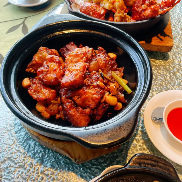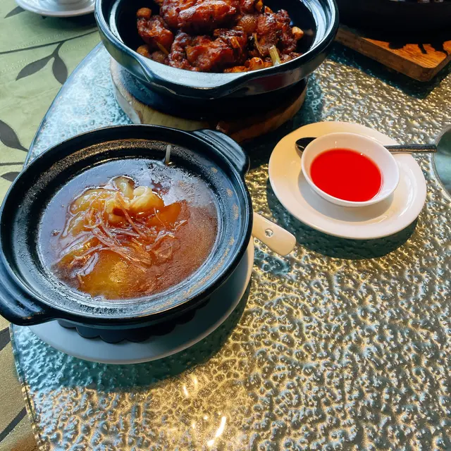用傳統嘅瓦煲仔上,夠晒熱辣辣。一打開蓋,濃郁嘅高湯香氣湧出嚟。湯頭煮得好夠火喉,質地稠身,充滿膠質,飲落口順滑溫潤。入面嘅翅針份量都好足,唔會稀稀疏疏,每一啖都食到真材實料。呢啲傳統菜式,喺星海呢度做得好紮實。聽聞佢哋嘅紅燒煲仔翅乳鴿都好出名,睇嚟要留返下次。