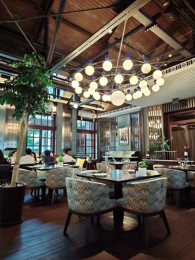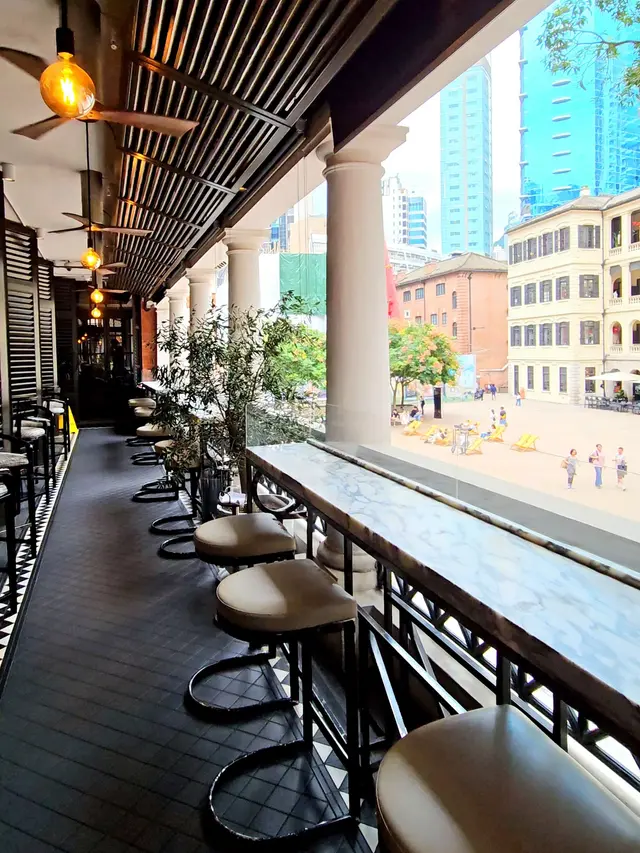 Cantina樓底特高,空間感和採光十足,裝潢以香檳綠作為主色調,走型格奢華風格。長長的歐式露台走廊也是一大亮點,坐在雲石吧台座位可以細賞整個檢閱廣場的風景,還有那棵碩大翠綠、有60多年樹齡的芒果樹🏛️🥭🌳😊