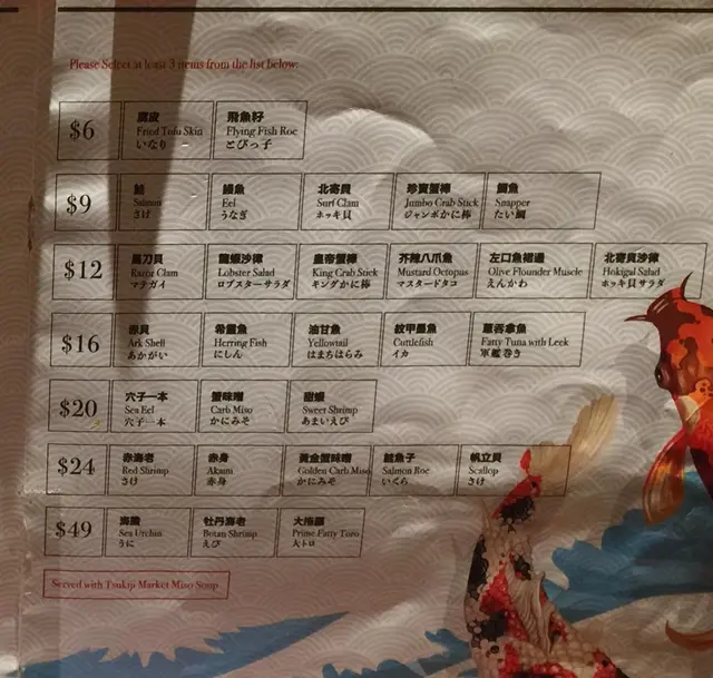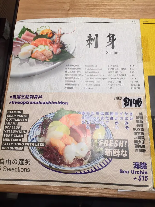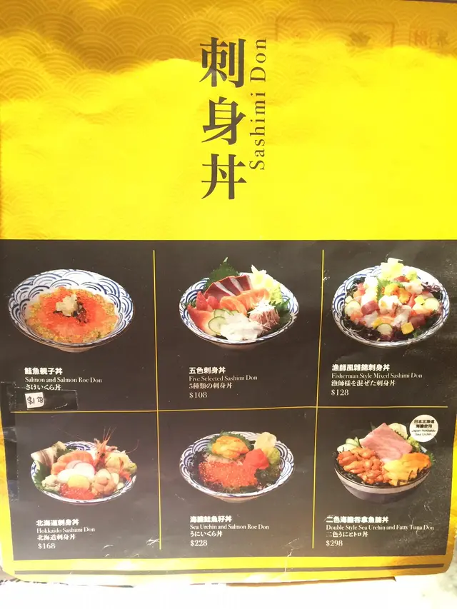 自選刺身丼的價錢隨著自己的選擇計算,基本價錢包括壽司飯$48,再加自選三款刺身計算。價錢和選擇都十分有彈性。