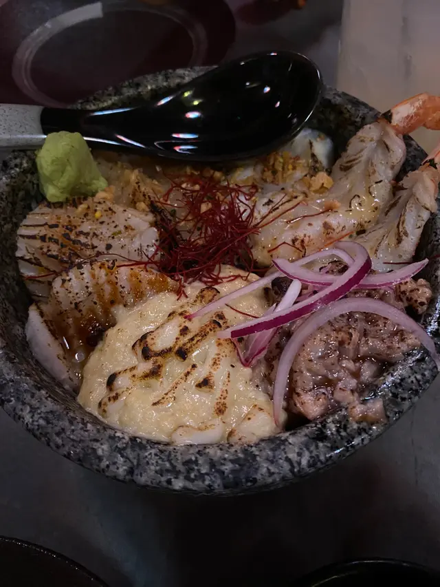 主食方面,我哋叫咗究極炎之丼,入面有好多件魚生,真係好豐富!米飯煮得剛剛好,搭配上新鮮嘅魚生,整個味道層次分明,食落去真係好滿足,完全唔會覺得膩。