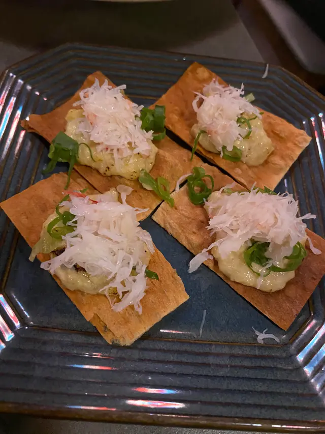 我哋首先叫咗幾個小食,包括蟹膏豆腐、鱈魚乾、芥辣八爪魚同清酒煮蜆。蟹膏豆腐質地滑溜,蟹膏味道濃郁,搭配上豆腐的清香,食落去真係好開心。而鱈魚乾就有啲鹹香,適合配酒嚟食,真係好正!芥辣八爪魚味道獨特,微辣又帶啲酸,食落去好開胃。清酒煮蜆就更加驚喜,蜆肉鮮甜,湯底清爽。