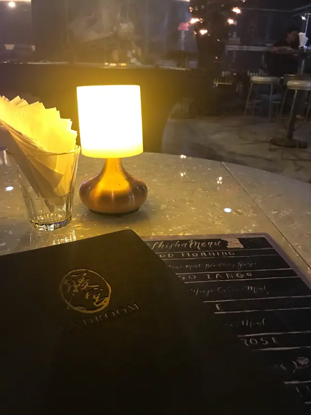 我倆一於盡皇帝般享受二人獨霸一個小包箱,在昏暗的燈光下,每枱之小枱燈確實有用武之地。服務員隨即遞上餐牌,有主餐牌及水煙餐牌供選擇,剛下班的我們點了2個精選套餐,填滿我們空檔的肚皮